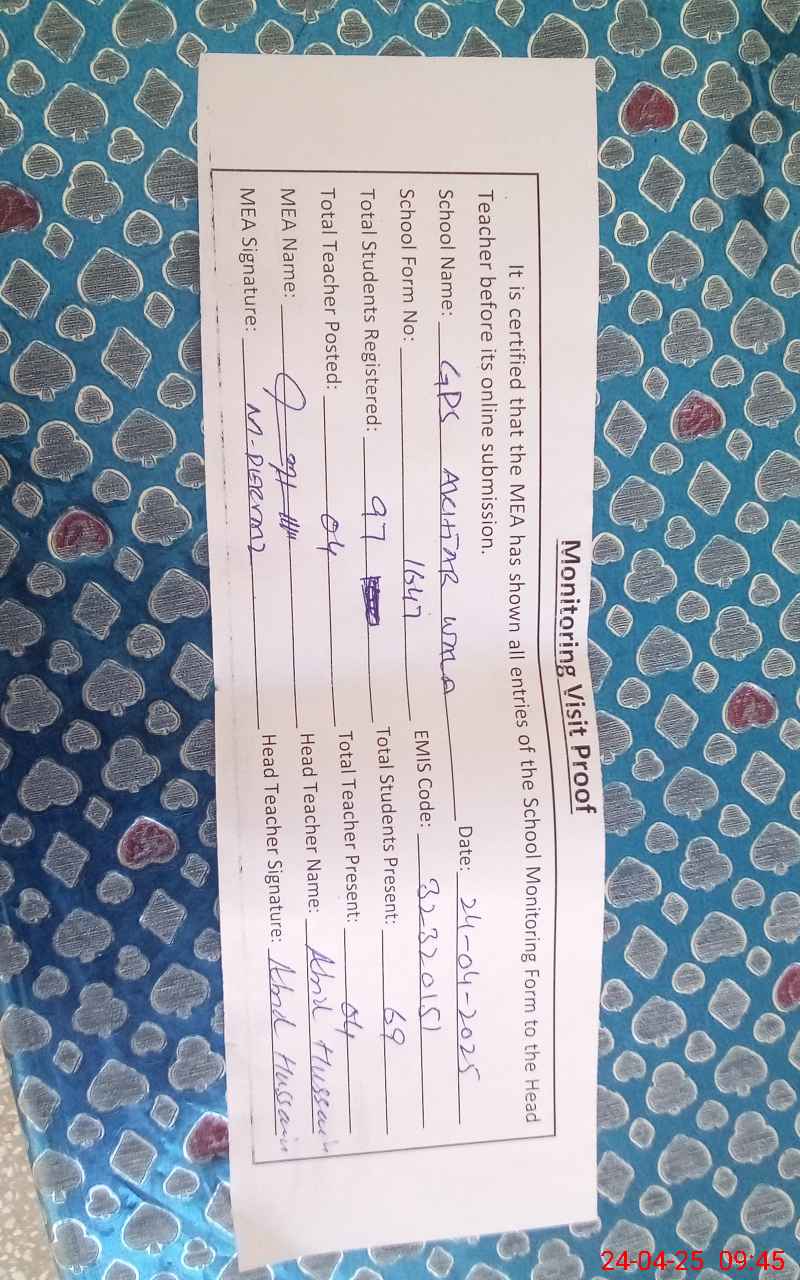 | EMIS Code: 32320161 | Name of School: GPS AKHTER WALA | |||