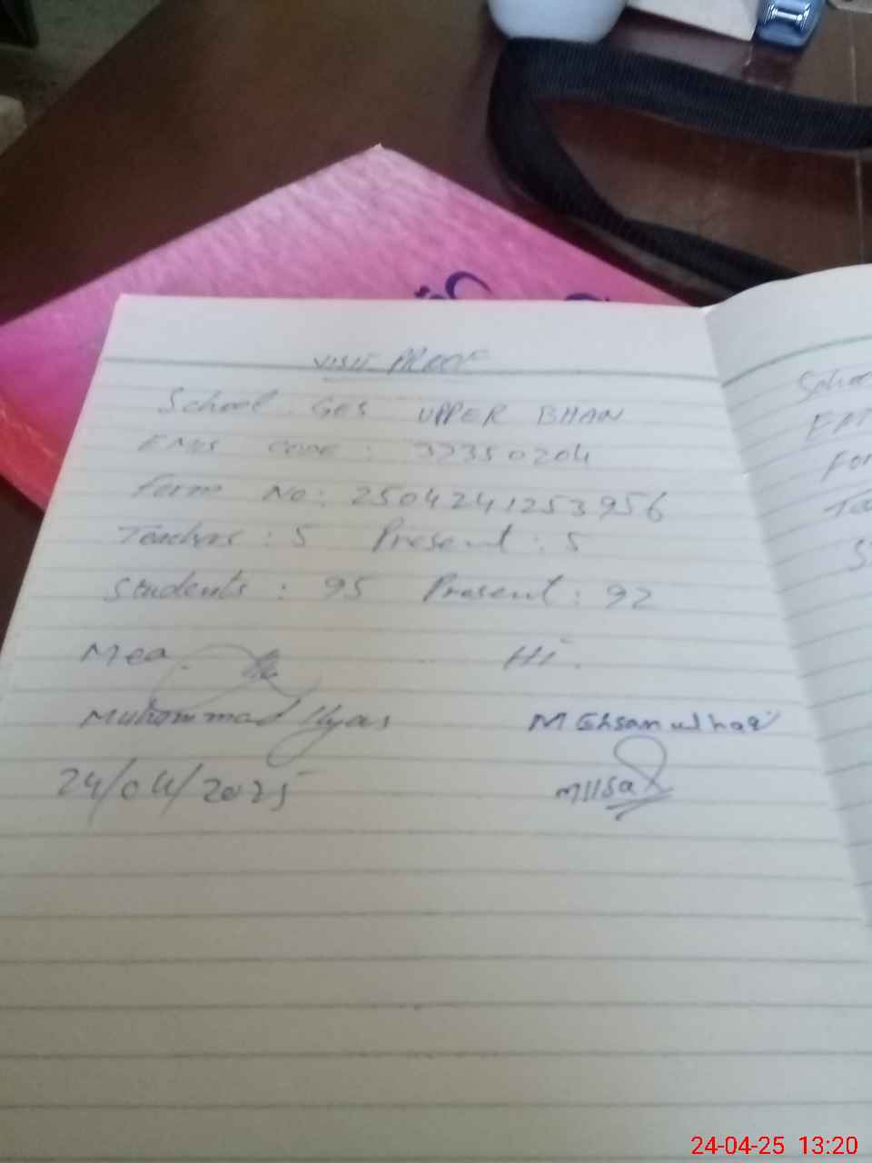 | Attendance Register | Head Teacher | MEA with School | Visit Proof |