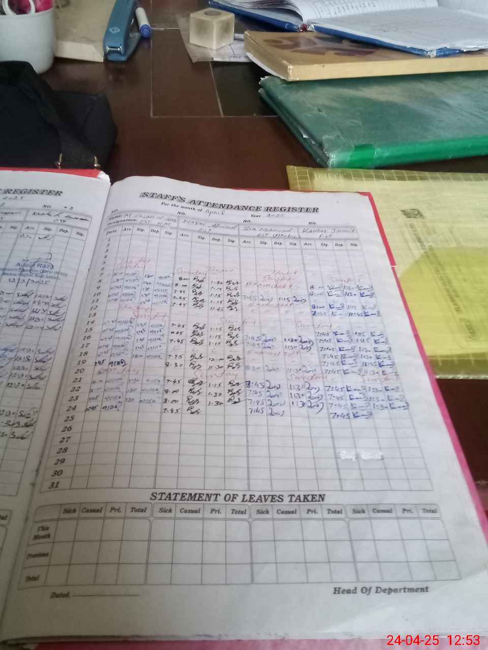 | Leave | Duty | Absent | Maternity | Medical | Ex- Pak |