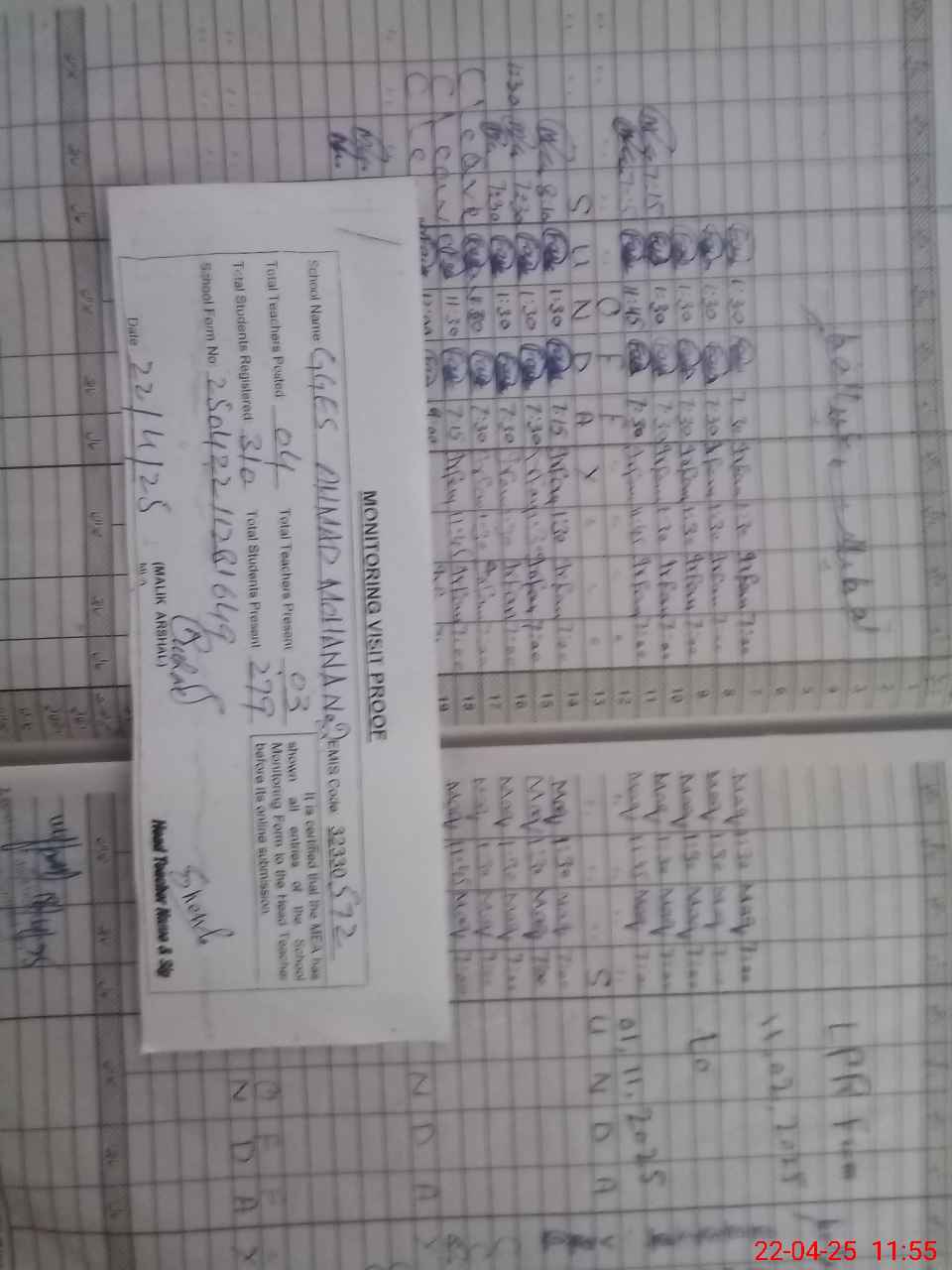| Attendance Register | Head Teacher | MEA with School | Visit Proof |