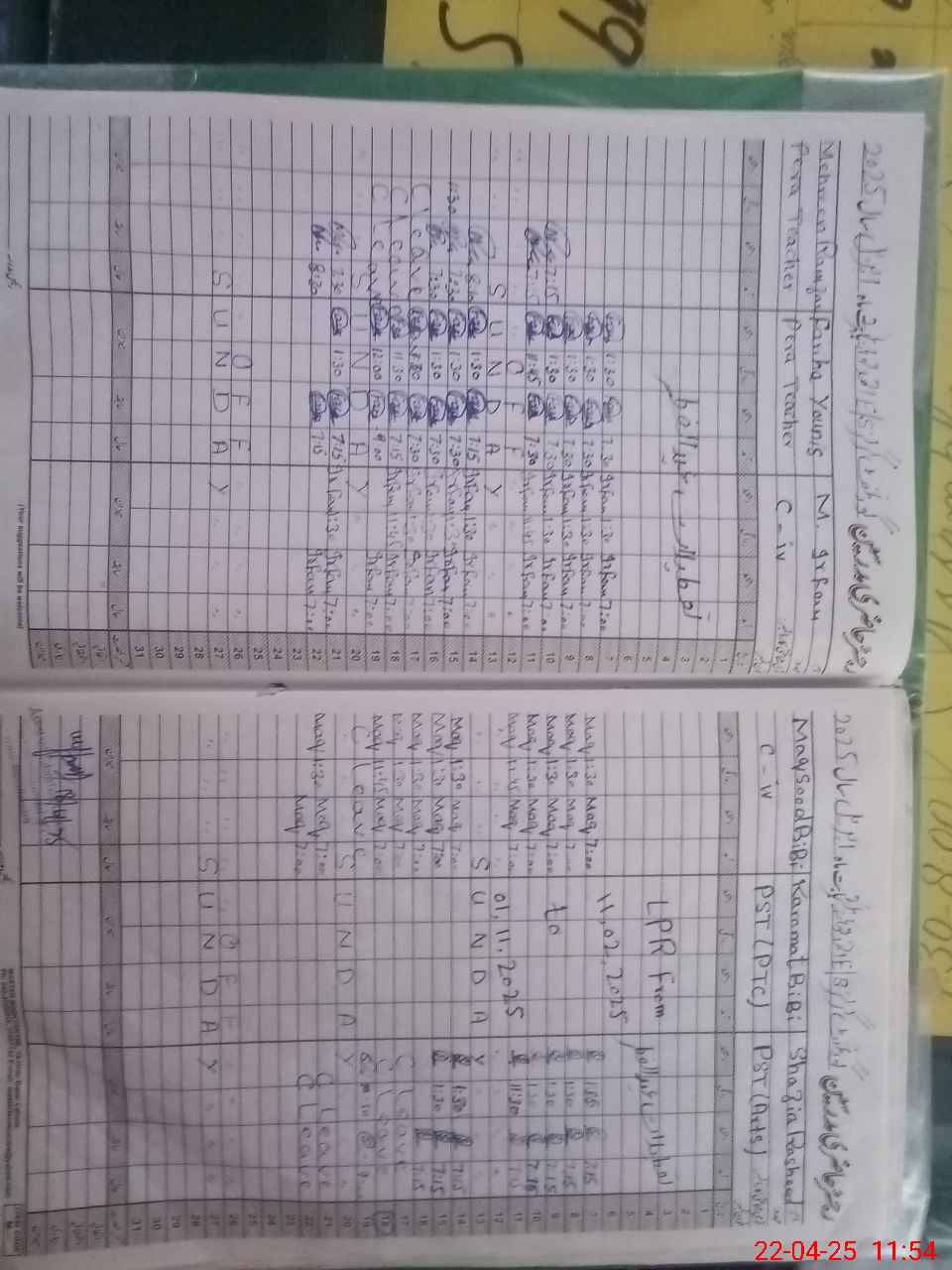 | CNIC | Full Name | Designation | R/C | Absence During Last Calender Month |