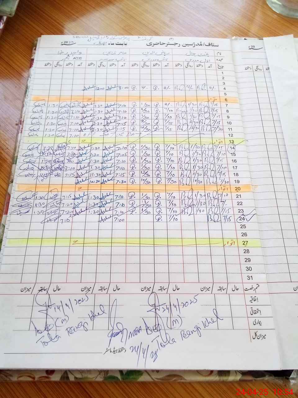 | CNIC | Full Name | Designation | R/C | Absence During Last Calender Month |