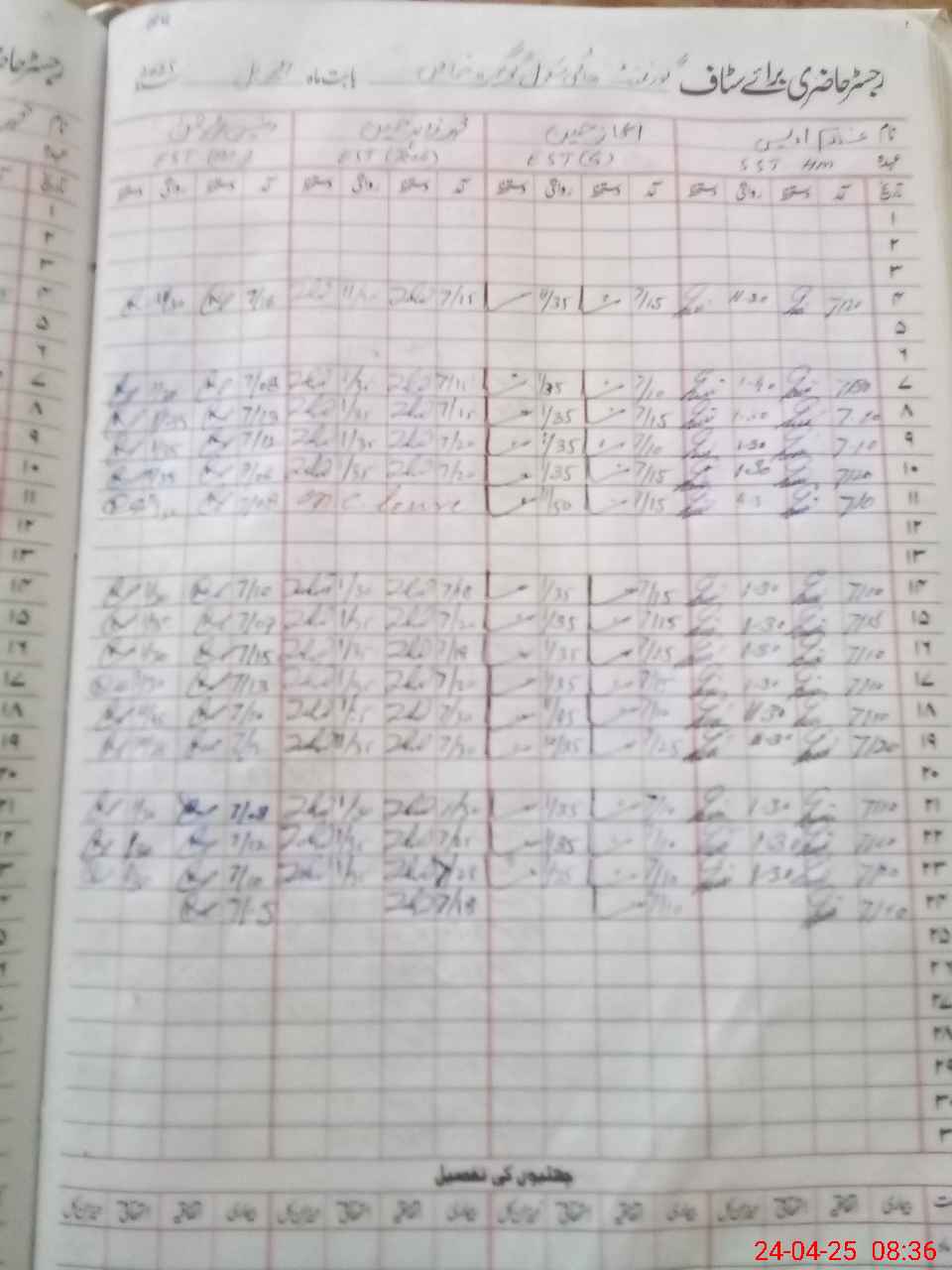 | CNIC | Full Name | Designation | R/C | Absence During Last Calender Month |
