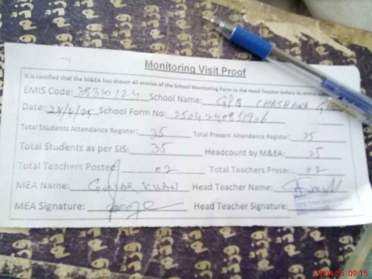 | EMIS Code: 38310124 | Name of School: GPS CHASHANA GHUNDA | |||
