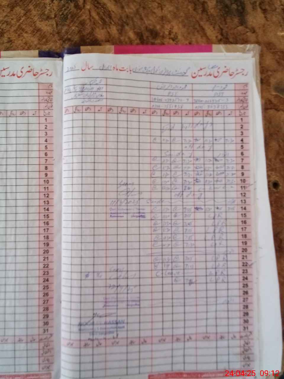| CNIC | Full Name | Designation | R/C | Absence During Last Calender Month |