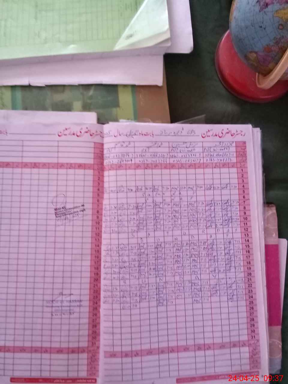 | CNIC | Full Name | Designation | R/C | Absence During Last Calender Month |