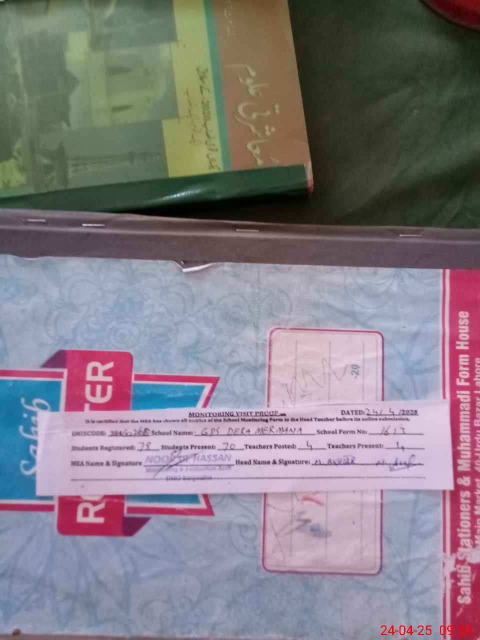 | Attendance Register | Head Teacher | MEA with School | Visit Proof |