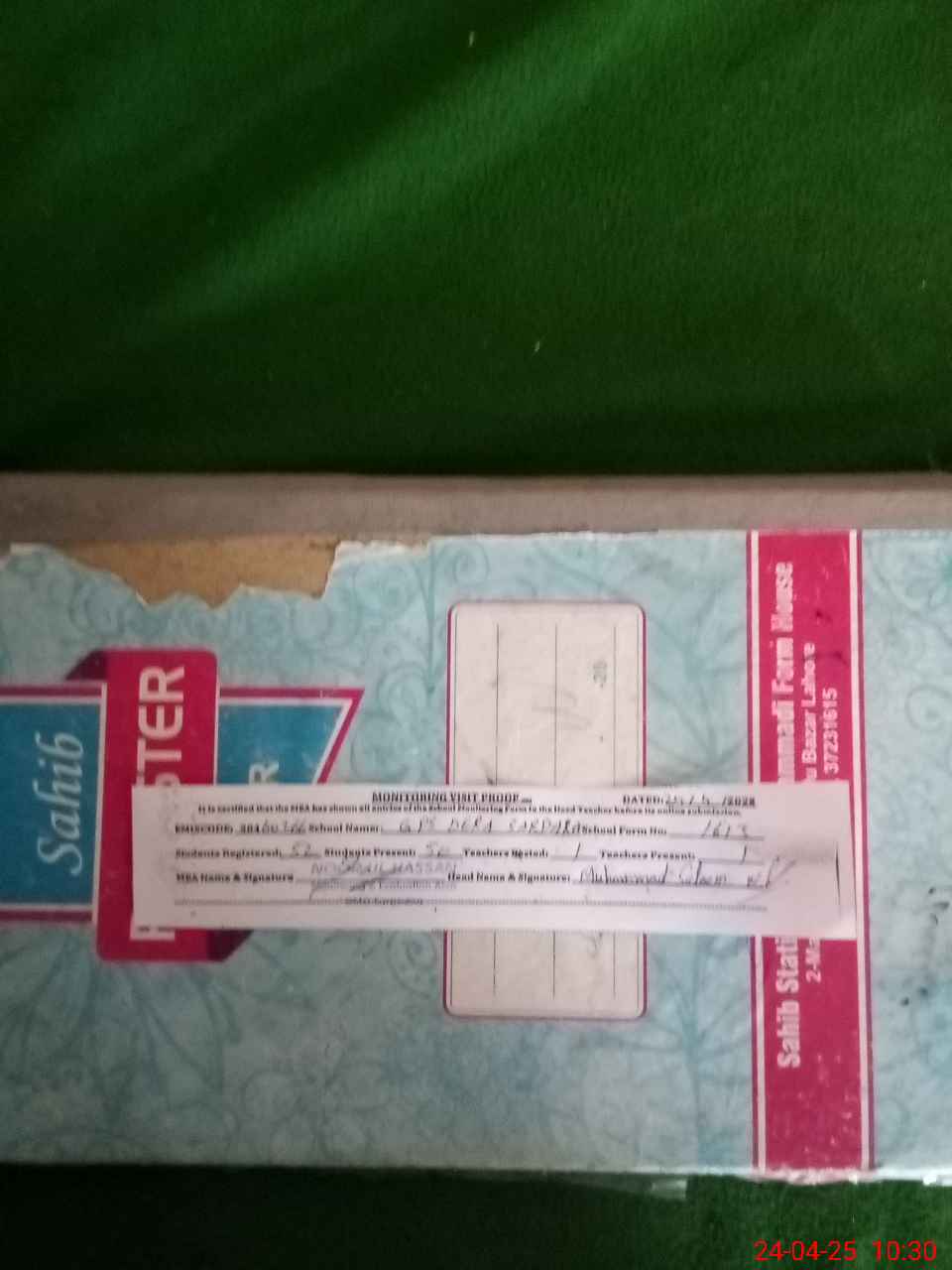 | Attendance Register | Head Teacher | MEA with School | Visit Proof |