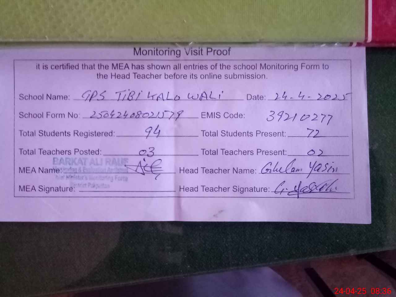 | EMIS Code: 39210277 | Name of School: GPS TIBI KALO WALI | |||