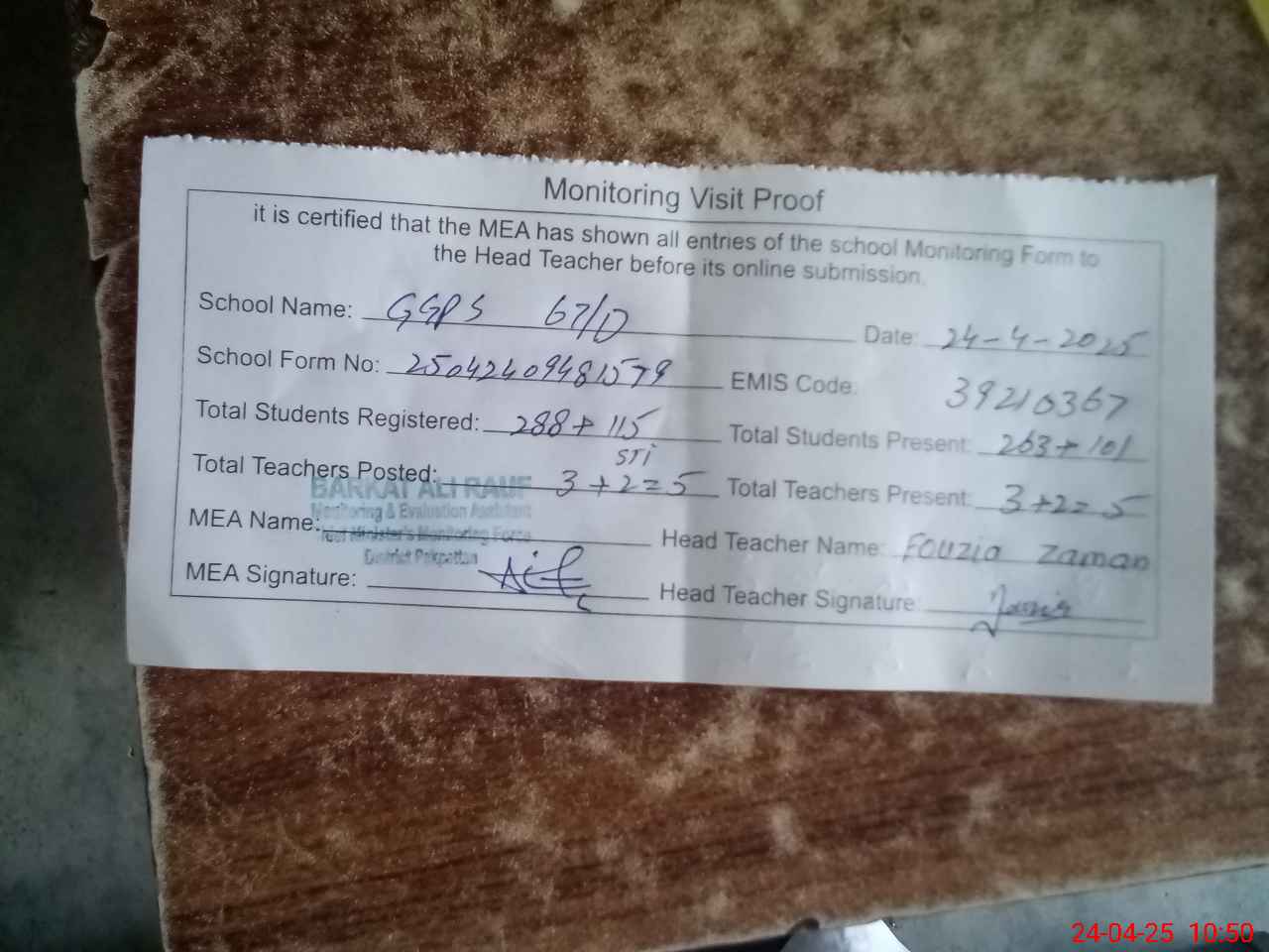 | EMIS Code: 39210367 | Name of School: GGPS 67 D | |||