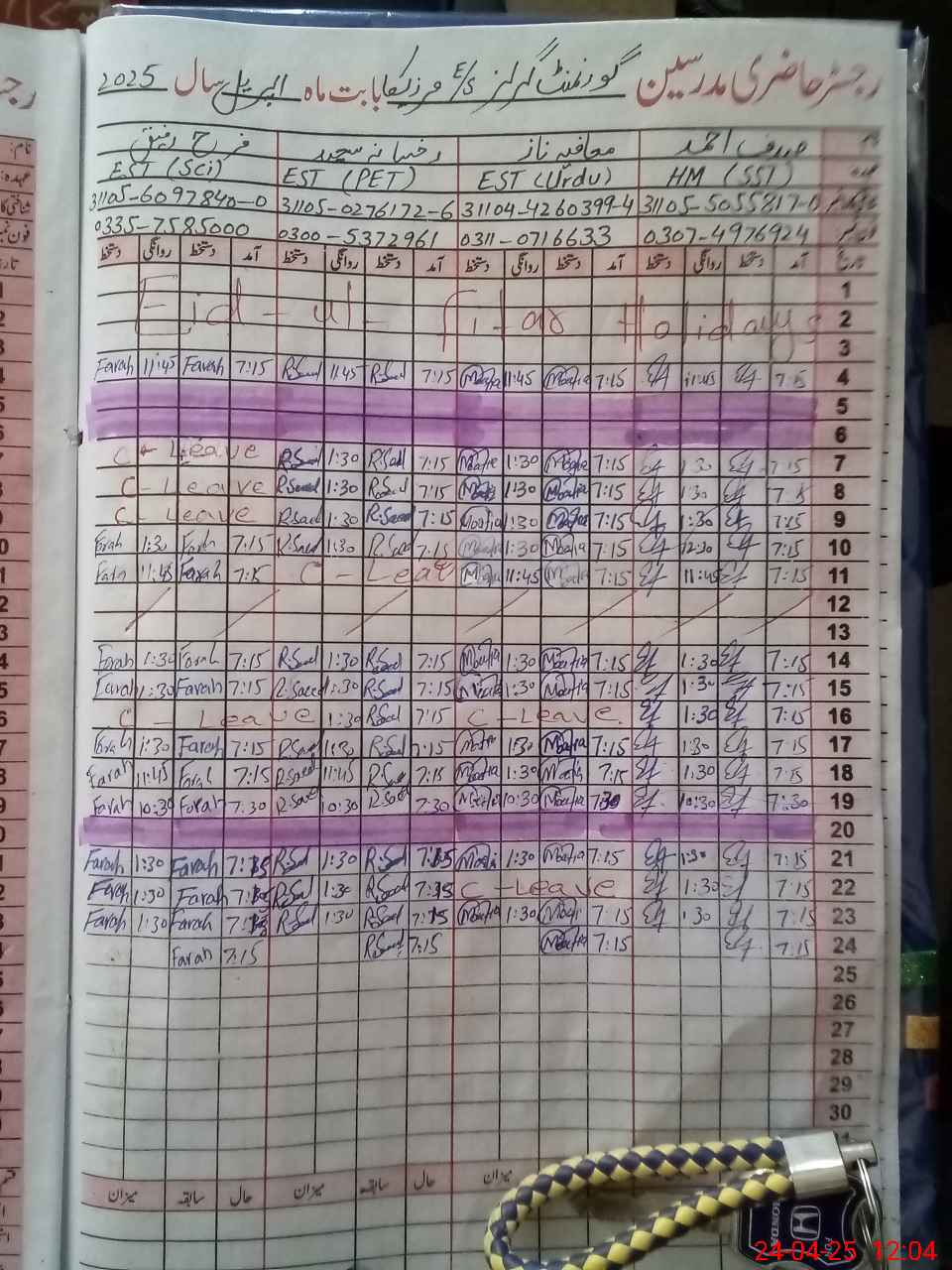 | Leave | Duty | Absent | Maternity | Medical | Ex- Pak |