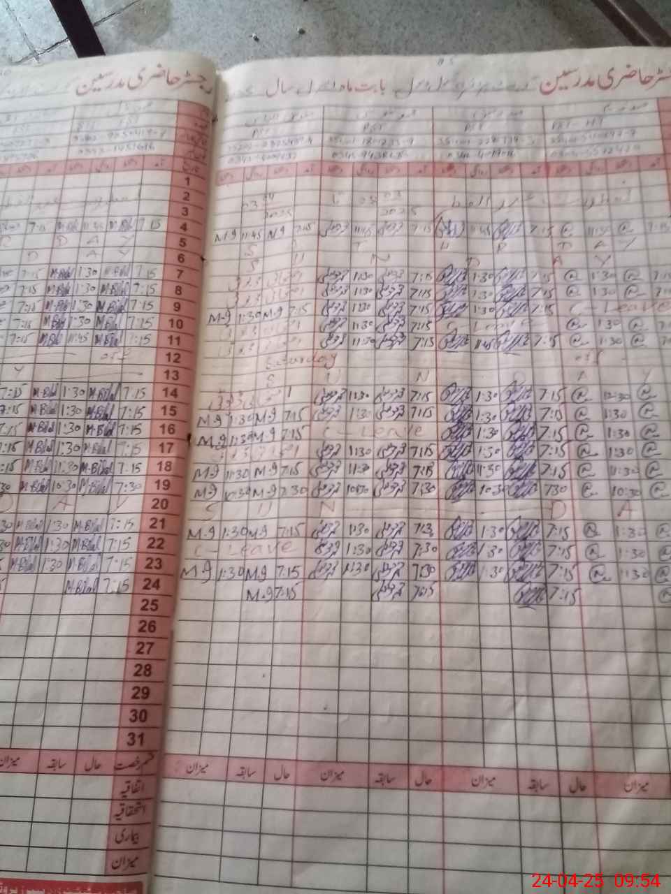 | Leave | Duty | Absent | Maternity | Medical | Ex- Pak |
