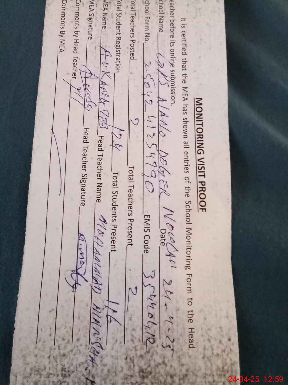 | EMIS Code: 35440412 | Name of School: GPS NANO DOGER NOWLAN | |||