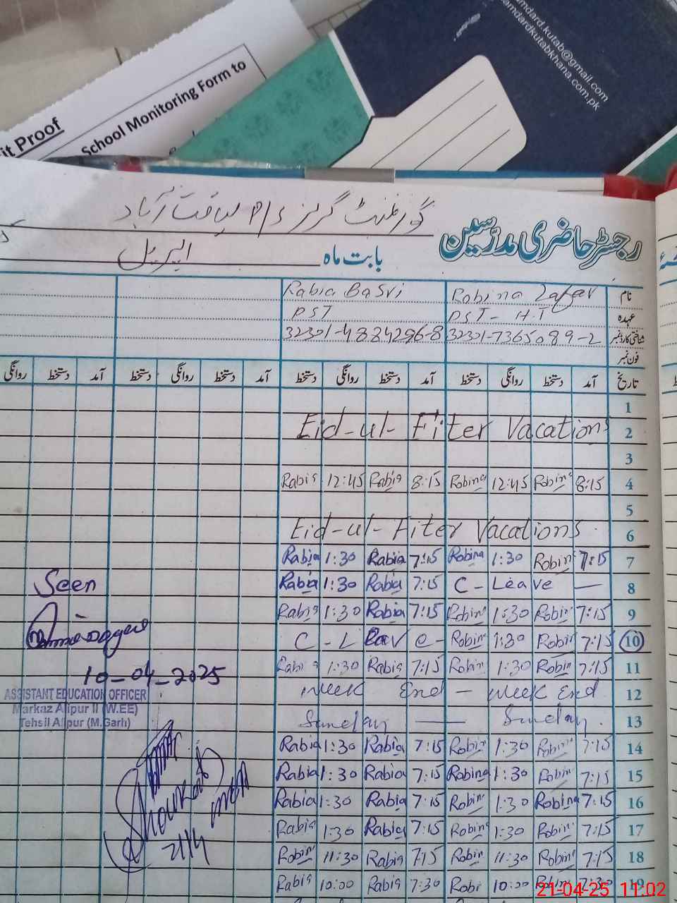 | District: MUZAFFARGARH | Tehsil: ALIPUR | Markaz: ALI PUR-II- FEMALE | Level: Primary | |
