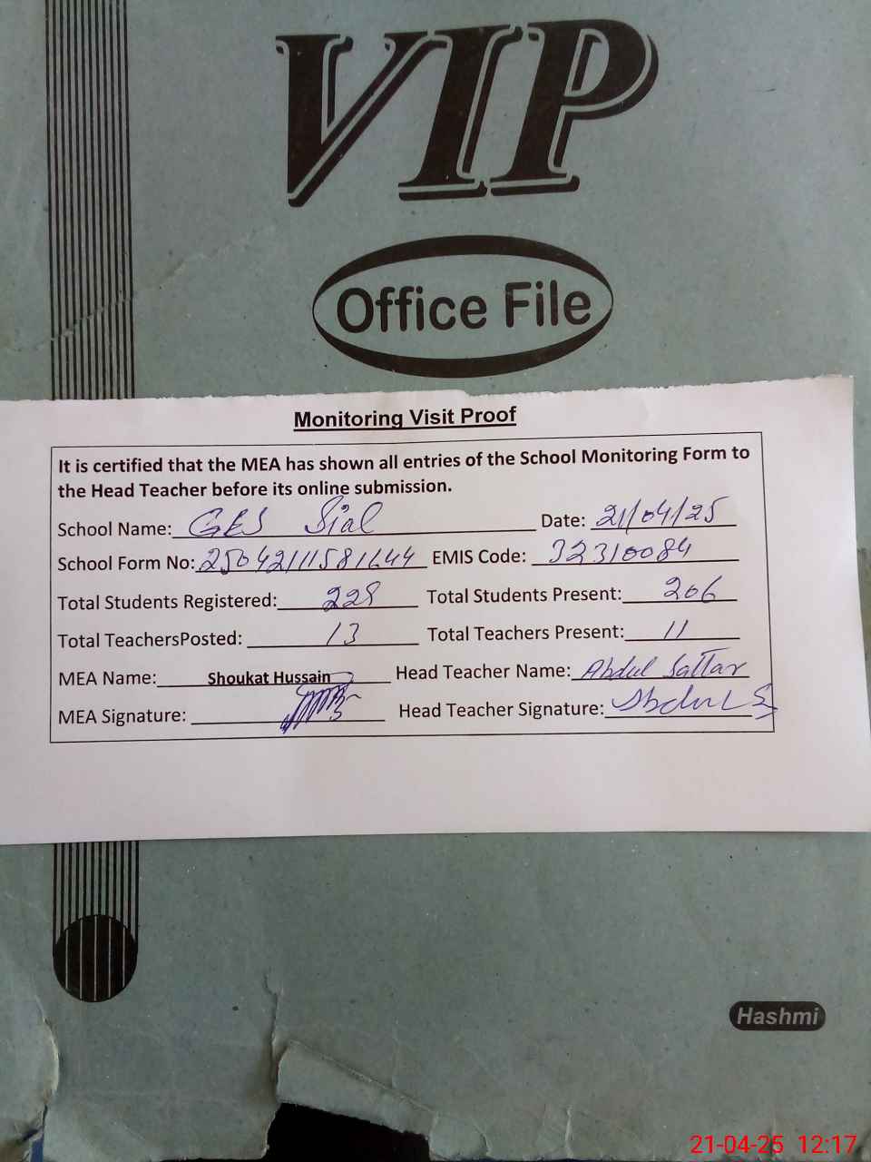 | EMIS Code: 32310084 | Name of School: GES SIAL | |||