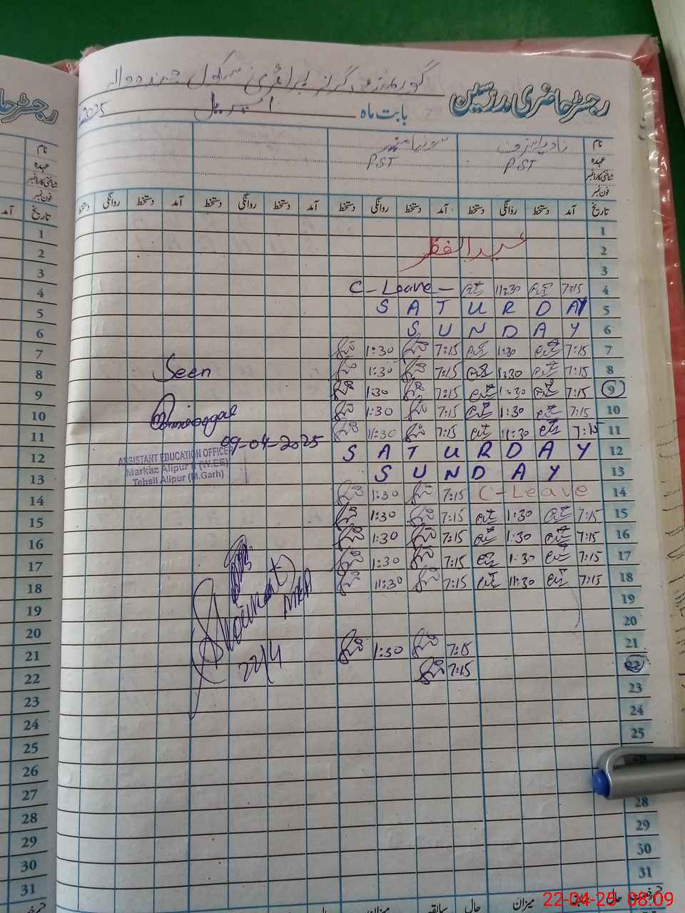 | Name: NA**** AS**** Designation: (School Headmaster's/Headmistress's) PST Phone/Cell Number: 03**** |