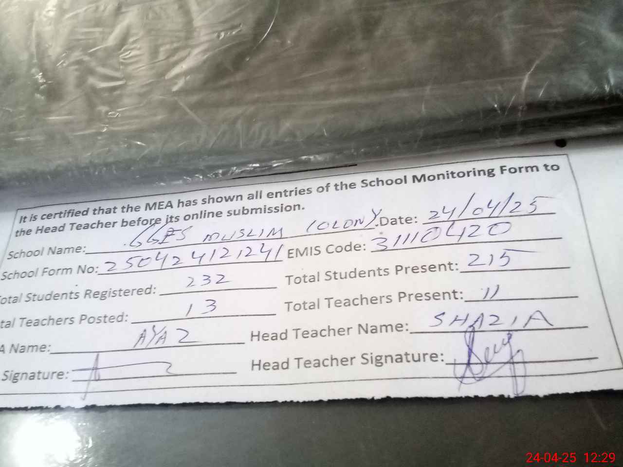 | EMIS Code: 31110420 | Name of School: GGES MUSLIM COLONY | |||