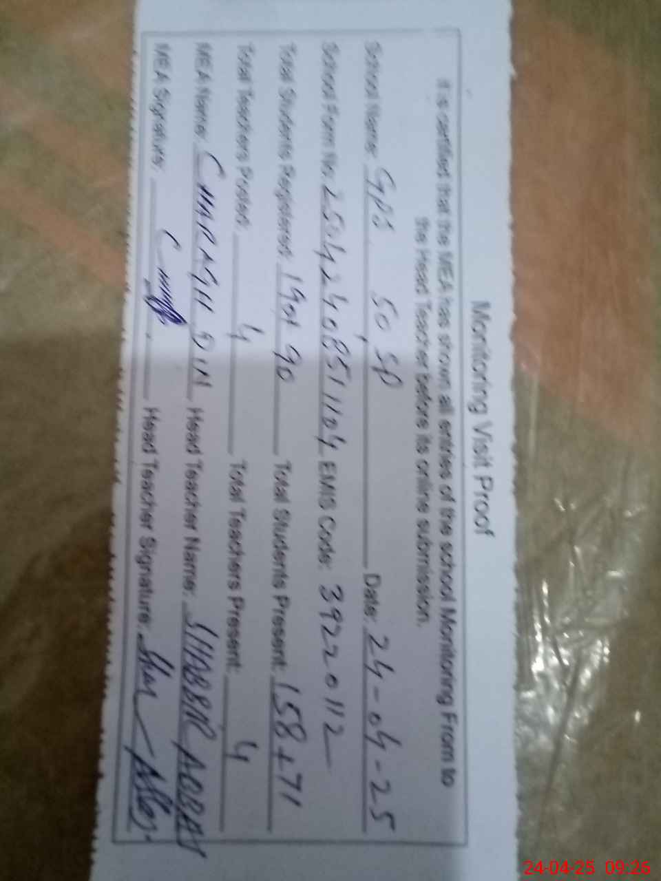 | EMIS Code: 39220112 | Name of School: GPS 50 SP | |||