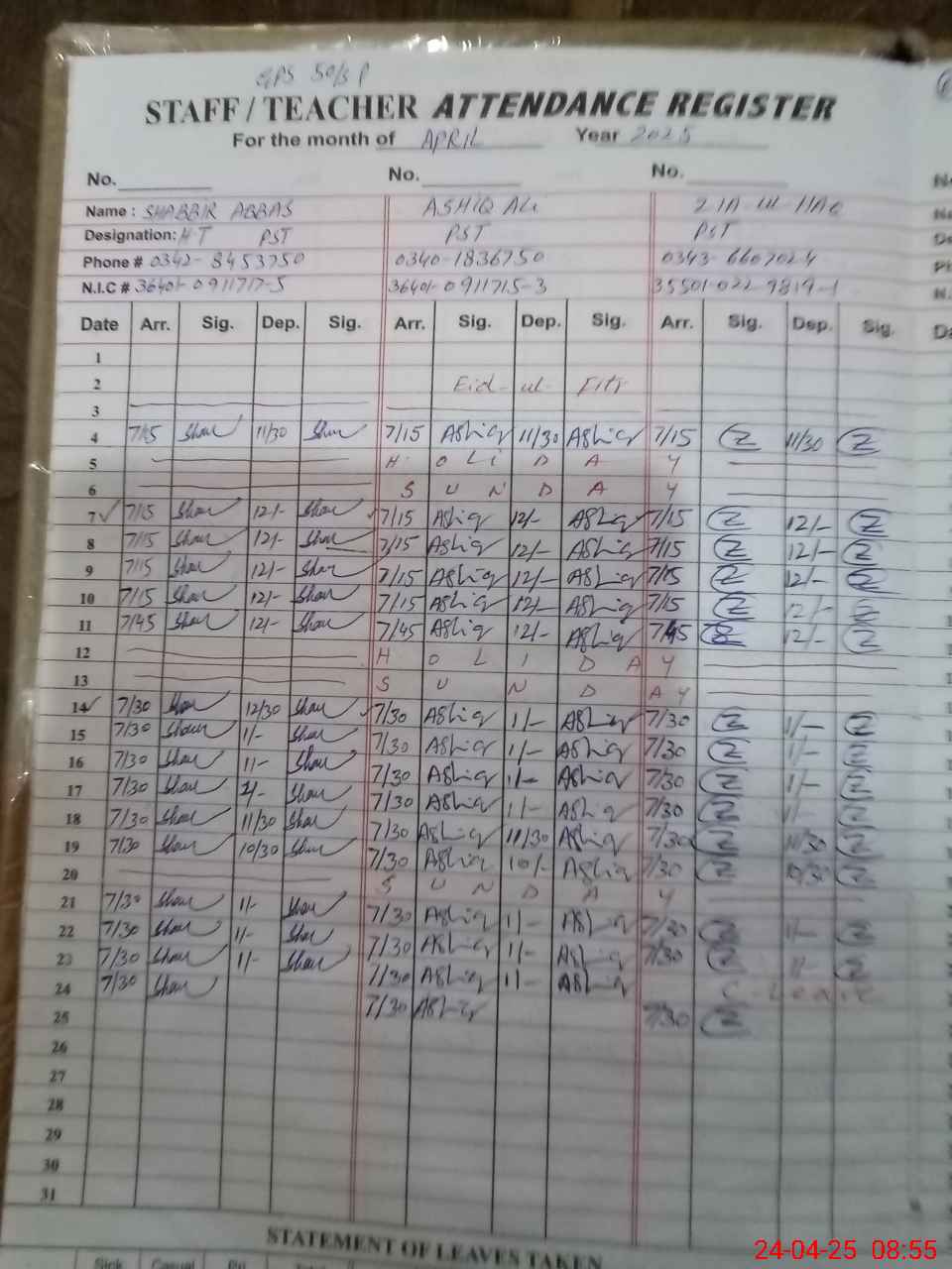 | Name: SH**** AB**** Designation: (School Headmaster's/Headmistress's) PST Phone/Cell Number: 03**** |