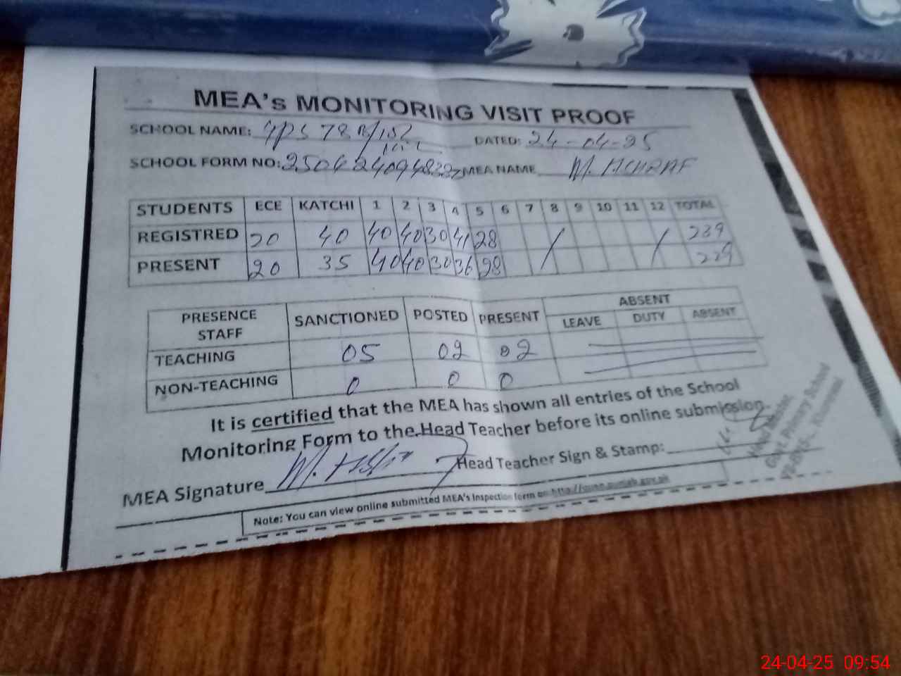 | EMIS Code: 36420663 | Name of School: GPS 78-B/15-L, KHANEWAL | |||