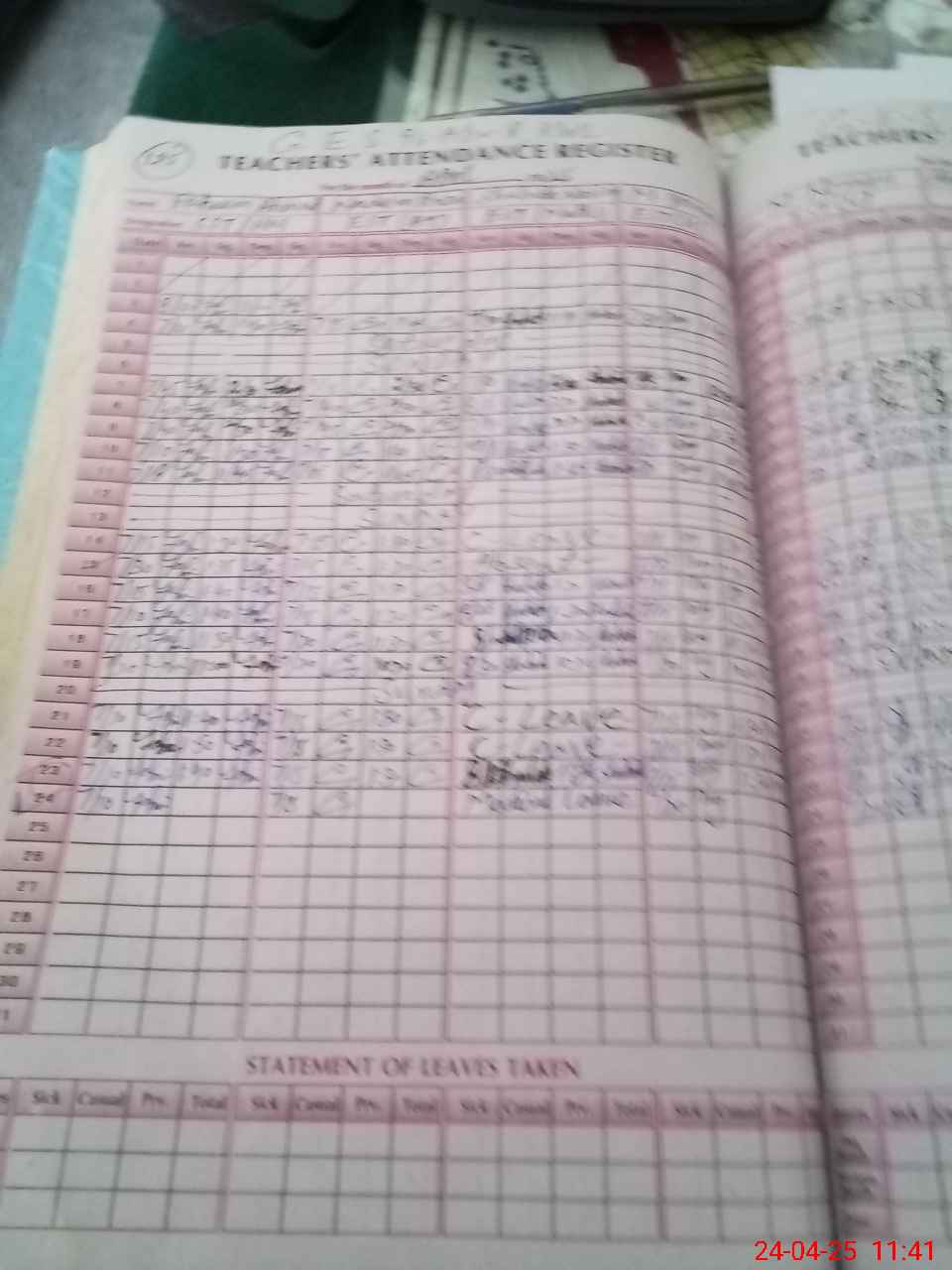 Leave Type | Remarks for Today (Leave,Training, Exam,Absent,Late, Other Duty) |