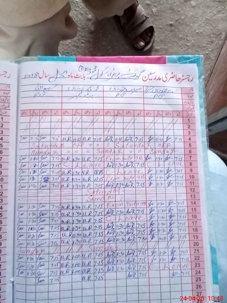 | Leave | Duty | Absent | Maternity | Medical | Ex- Pak |