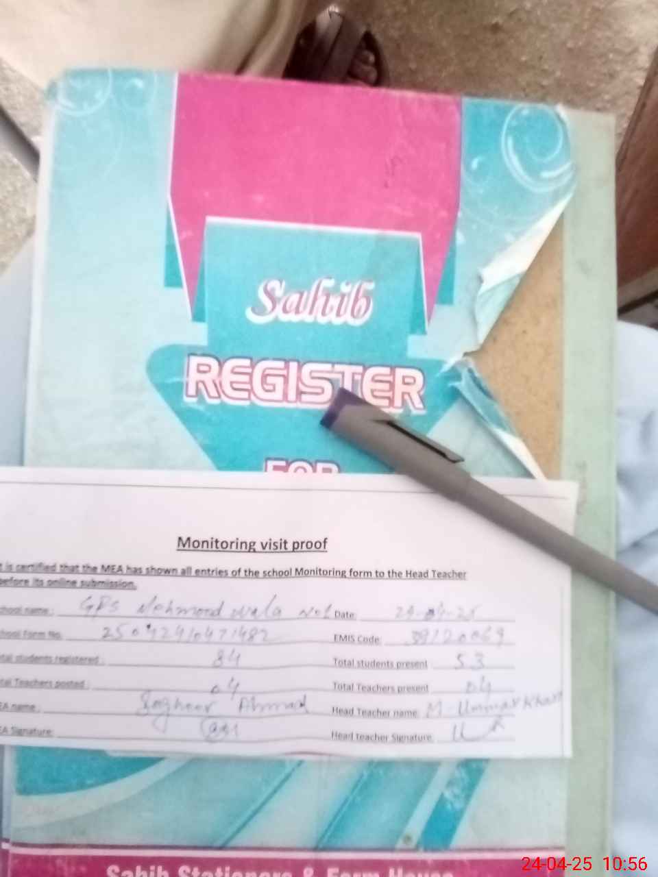 | Attendance Register | Head Teacher | MEA with School | Visit Proof |