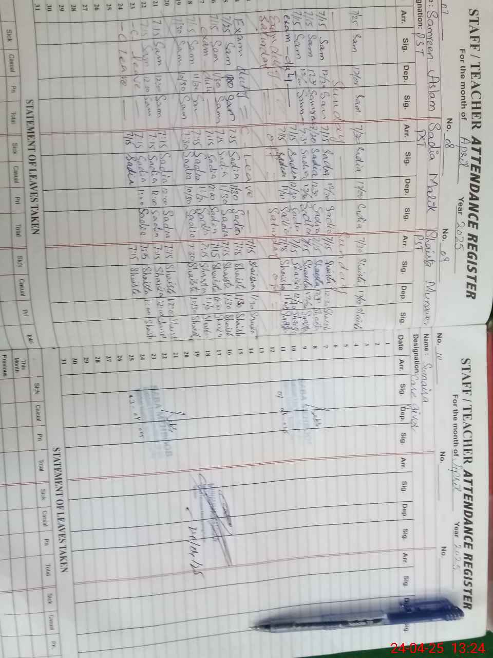 | Leave | Duty | Absent | Maternity | Medical | Ex- Pak |