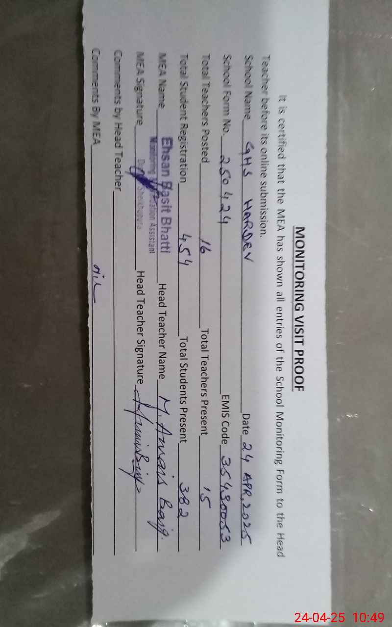 | EMIS Code: 35430053 | Name of School: GHS HARDEV | |||