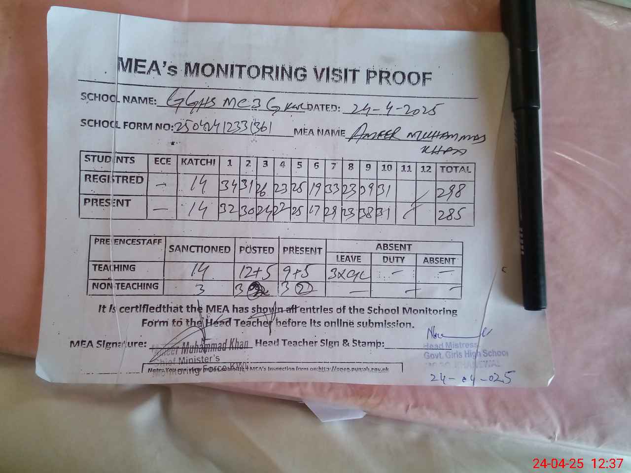 | EMIS Code: 36420365 | Name of School: GGHS MC 3-G, KHANEWAL | |||