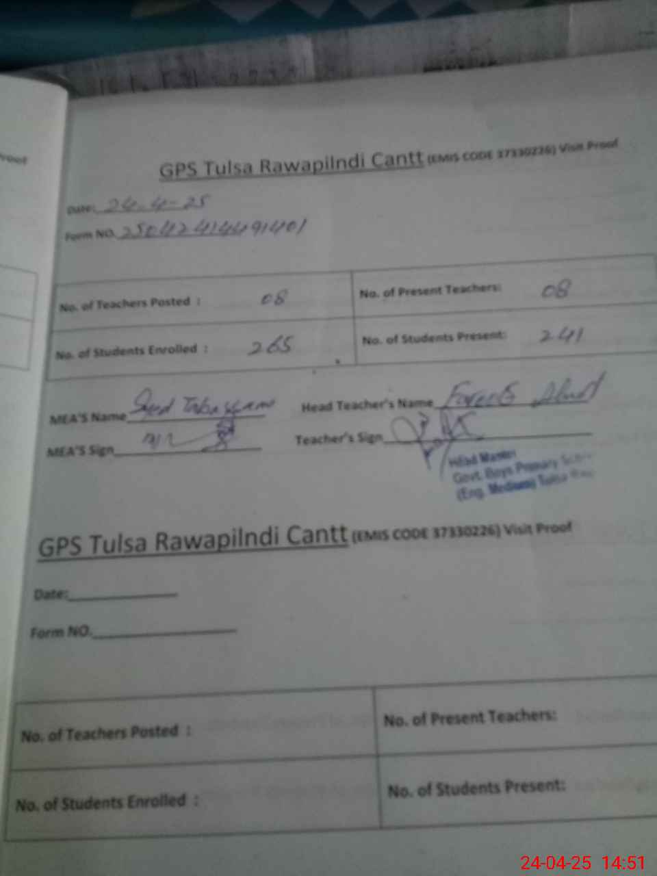 | District: RAWALPINDI | Tehsil: RAWALPINDI | Markaz: RWP CANTT-MALE | Level: Primary | |