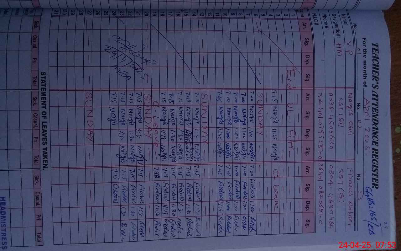 | Name: NA**** GU**** Designation: (School Headmaster's/Headmistress's) SST (SCIENCE) Phone/Cell Number: 03**** |
