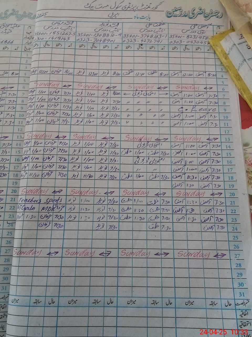 | CNIC | Full Name | Designation | R/C | Absence During Last Calender Month |