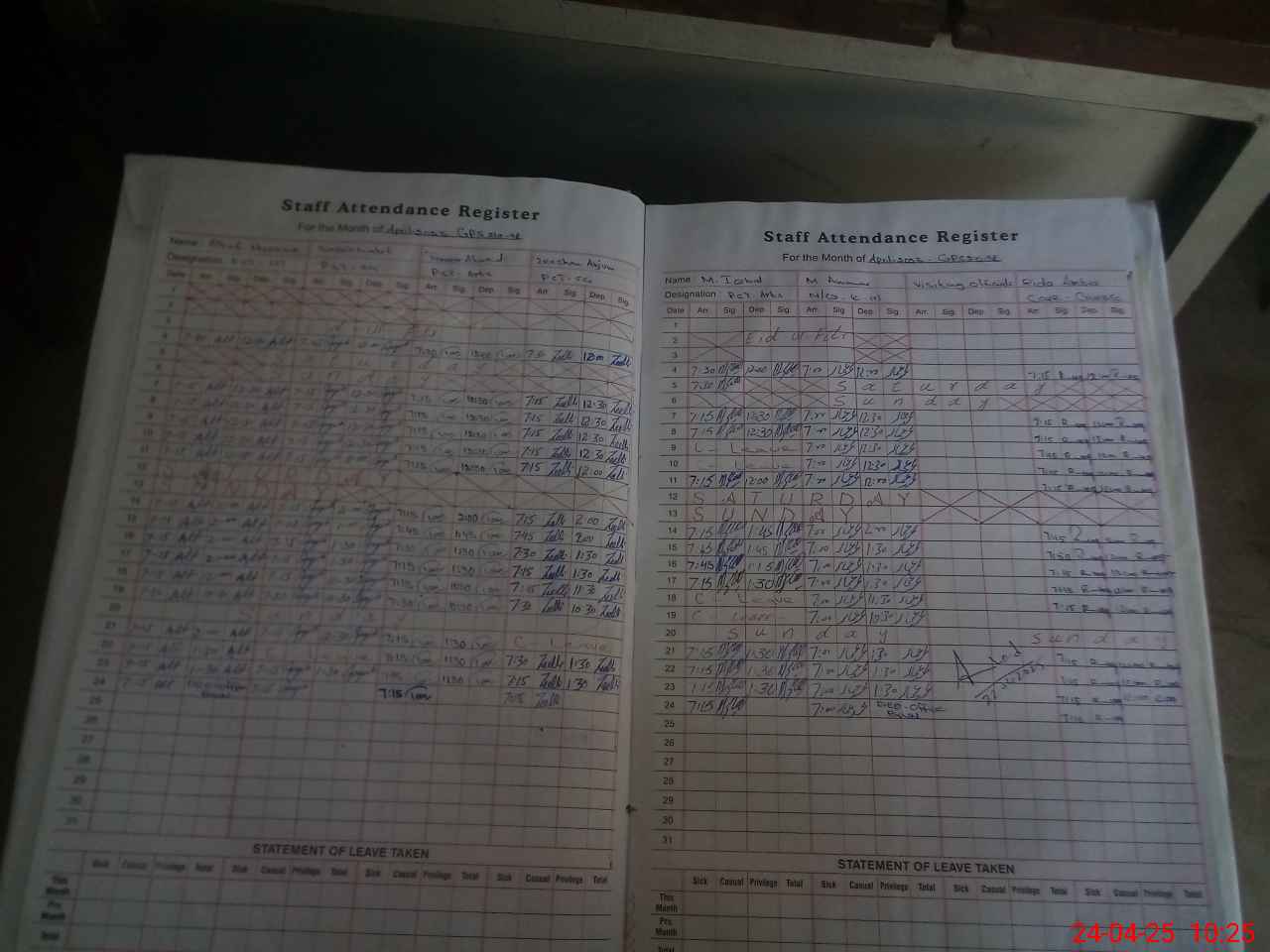| Leave | Duty | Absent | Maternity | Medical | Ex- Pak |