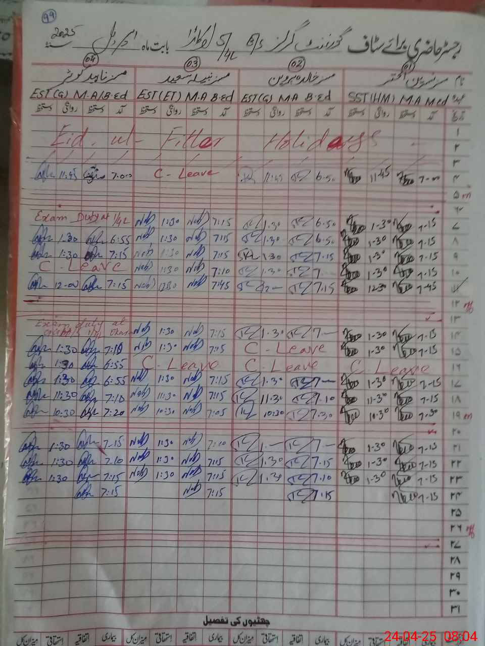 | Leave | Duty | Absent | Maternity | Medical | Ex- Pak |