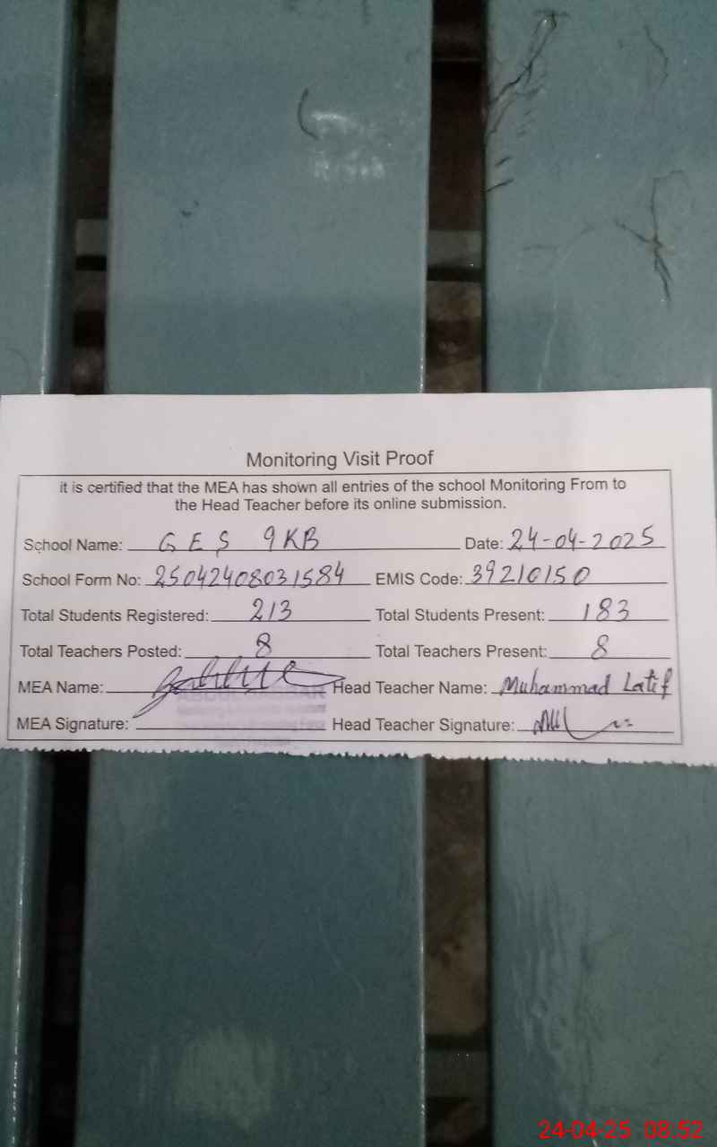 | EMIS Code: 39210150 | Name of School: GES 9 KB | |||