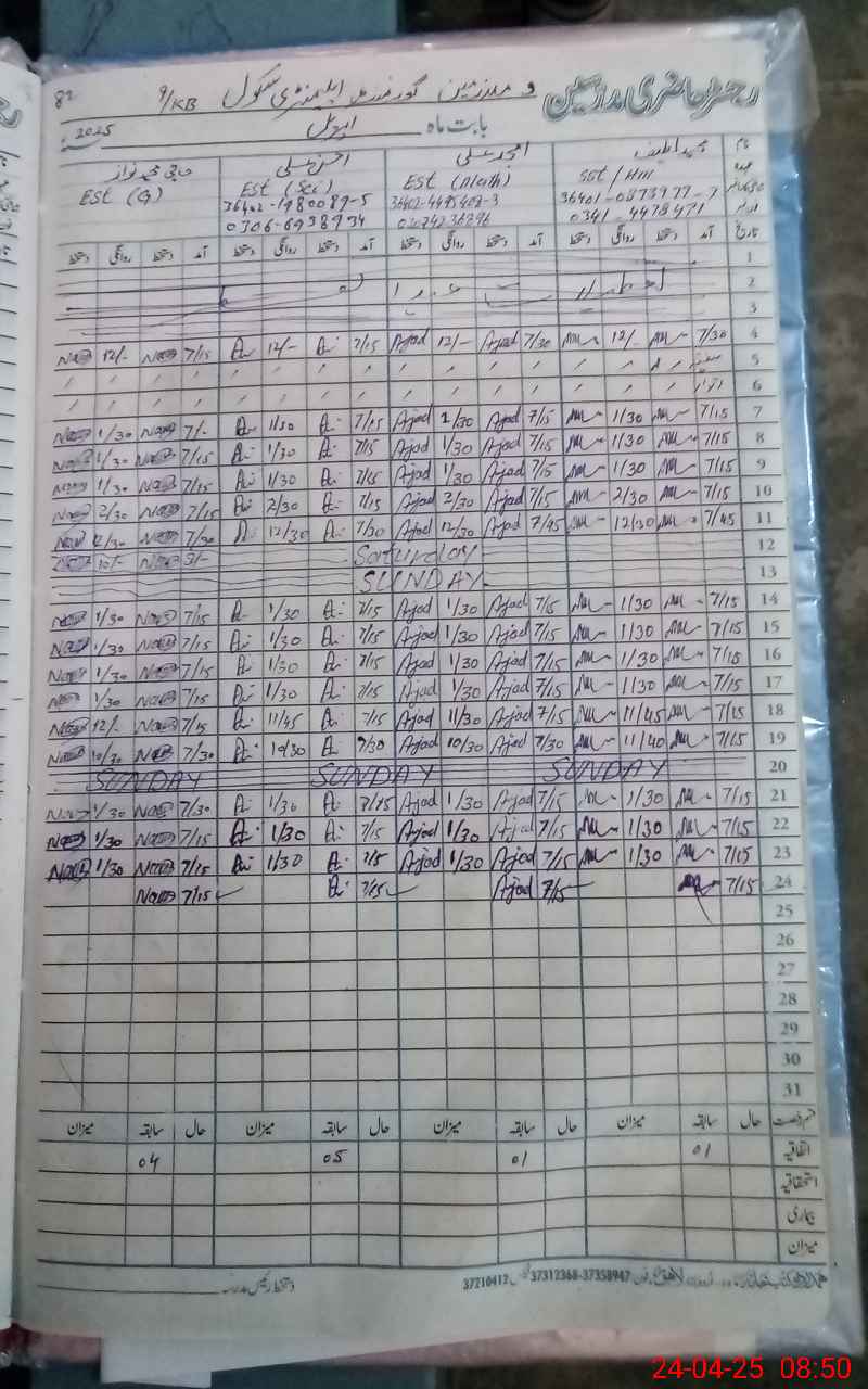 | Monitoring Date: 24-04-2025 | Start Time: 24-04-2025 08:03 AM | End Time: 24-04-2025 08:52 AM | Name of MEA: AB**** JA**** | |