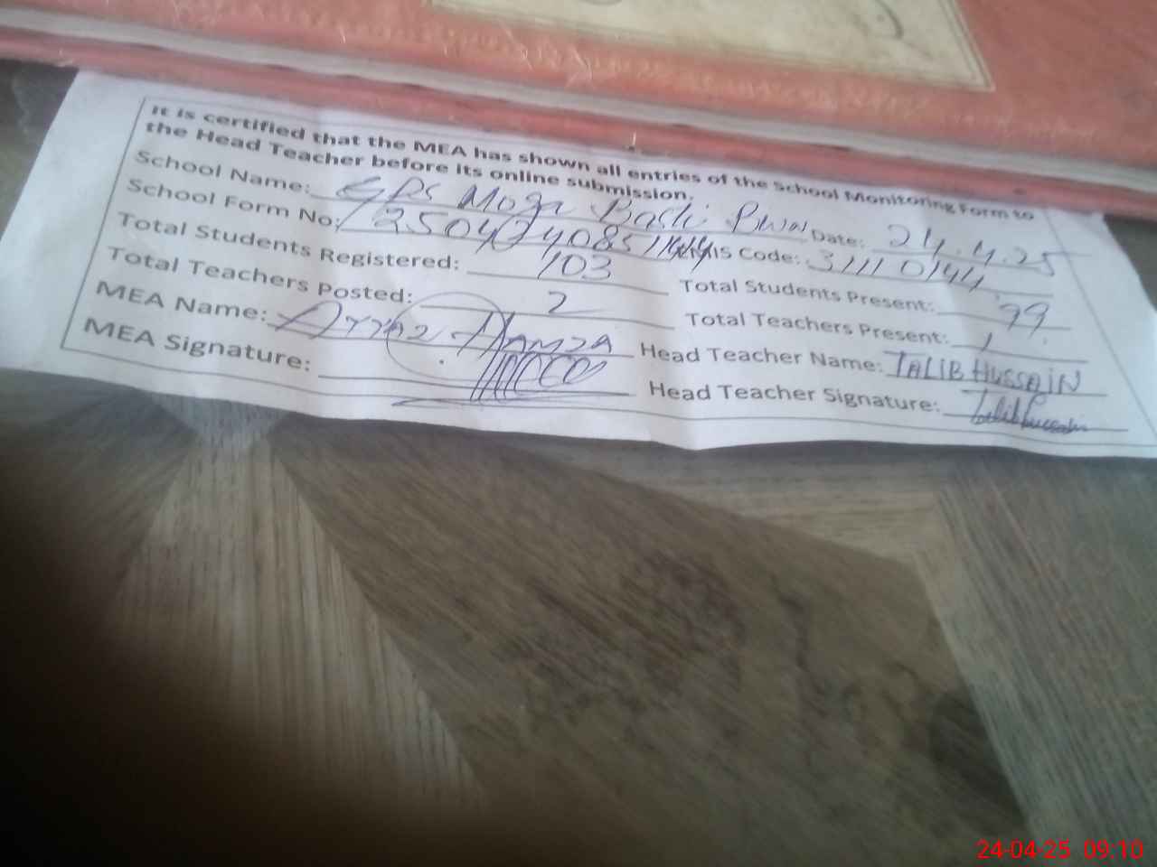 | Certified that this School was Inspected by the Undersigned MEA/DMO Today and the Information Stated Above is as Per Record. | |||||