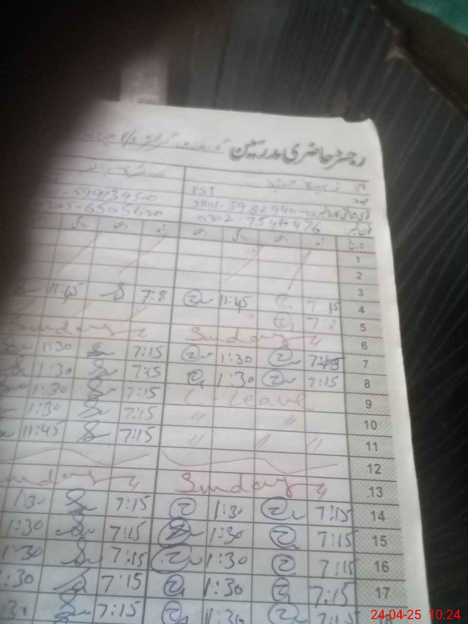 | CNIC | Full Name | Designation | R/C | Absence During Last Calender Month |