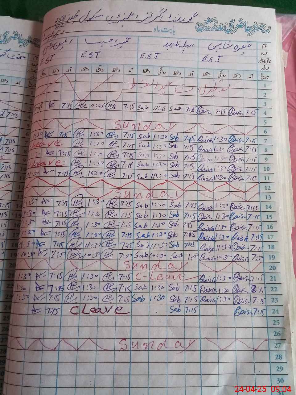 | 31**** | Hu**** Ha**** | 3 | 1 | 0 | 0 | 0 | 0 | 0 | 0 | 0 | 0 | 0 | Absent (Un-Authorized) |