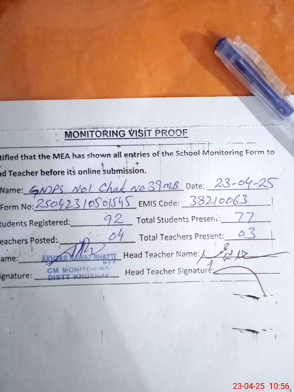| EMIS Code: 38210063 | Name of School: GMPS NO. 1 CHAK NO. 39 MB JAUHARABAD | |||