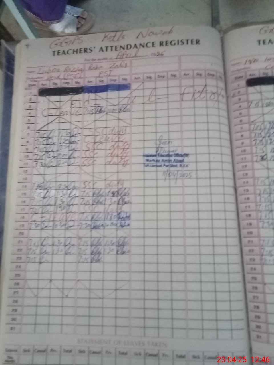 | Name: Lu**** Ra**** Designation: (School Headmaster's/Headmistress's) PST Phone/Cell Number: 03**** |