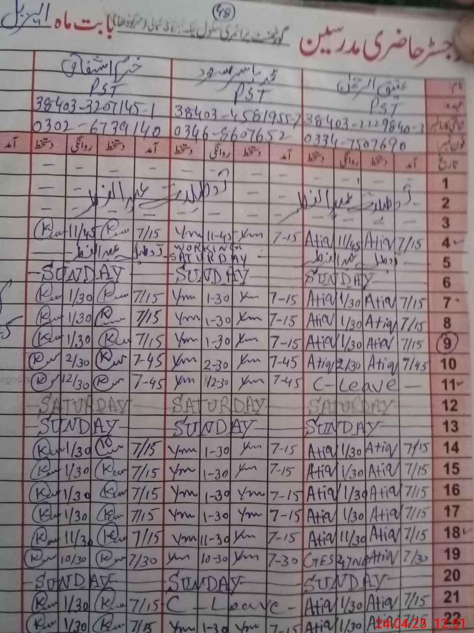 | Name: AT**** URRE**** Designation: (School Headmaster's/Headmistress's) PST Phone/Cell Number: 03**** 75**** |