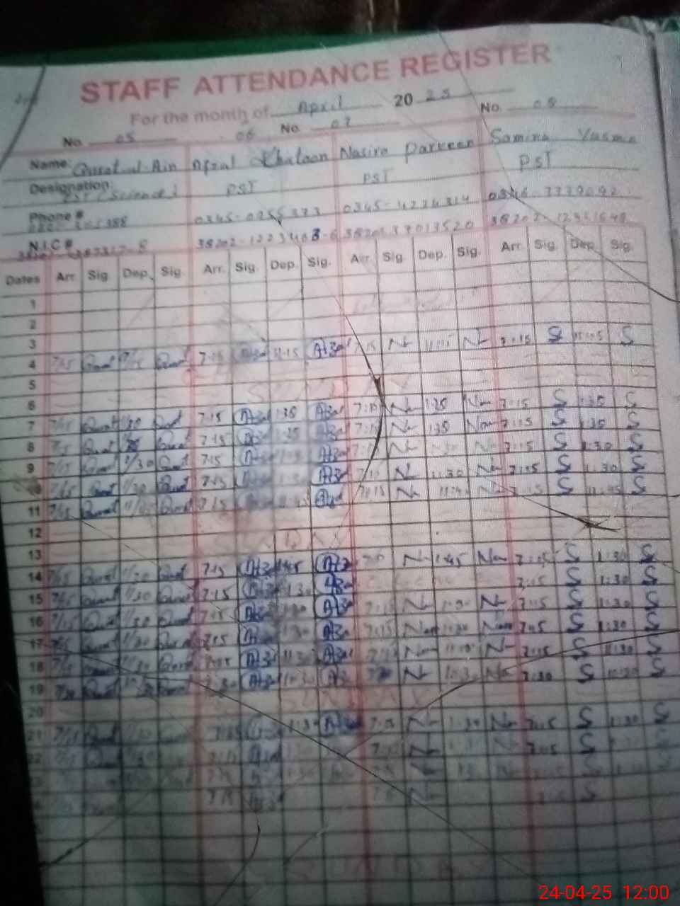 | 38**** | Gh**** Ya**** | SESE | Contract | 0 | 0 | 0 | 0 | 0 | 0 | 0 | 0 | 0 | Casual |
