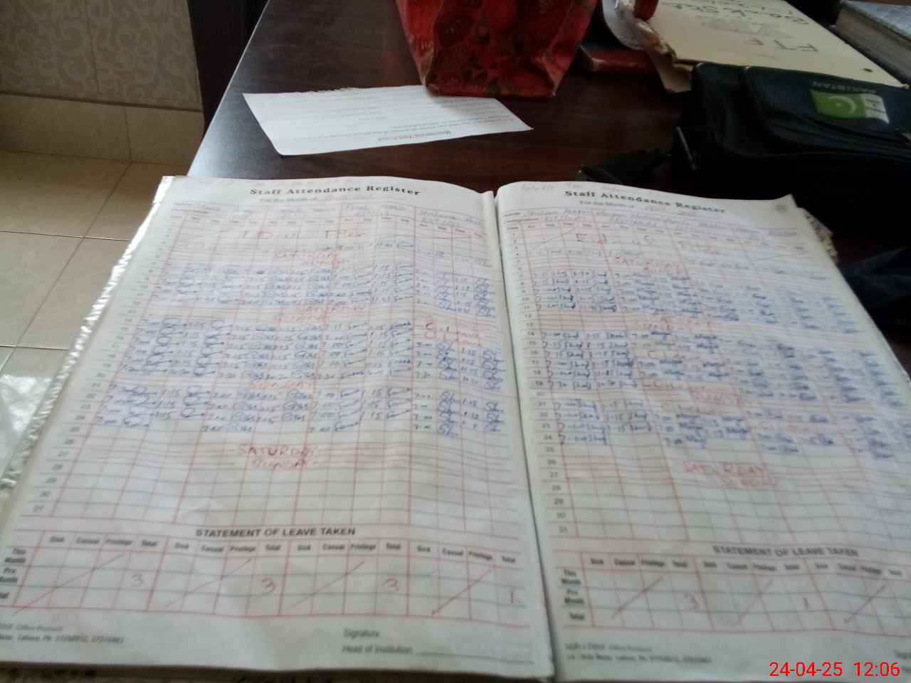 | Leave | Duty | Absent | Maternity | Medical | Ex- Pak |