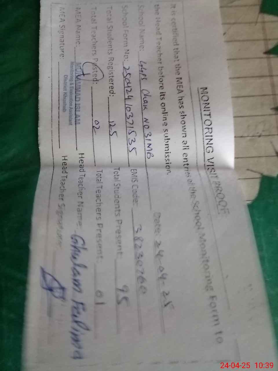 | EMIS Code: 38230760 | Name of School: GGPS CHAK NO 31 MB | |||