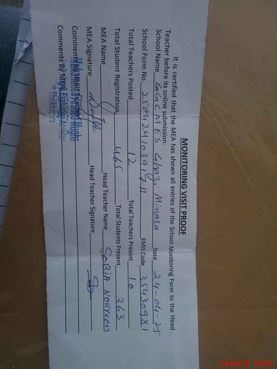 | EMIS Code: 35430981 | Name of School: GGCMES GHAZI MINARA | |||