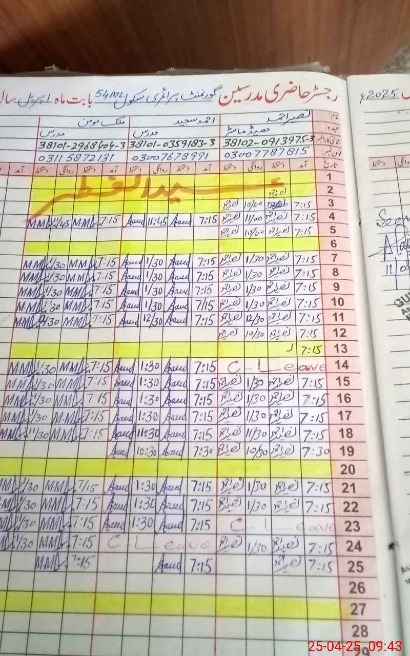 | EMIS Code: 38140209 | Name of School: GPS CHAK NO 54 ML | |||