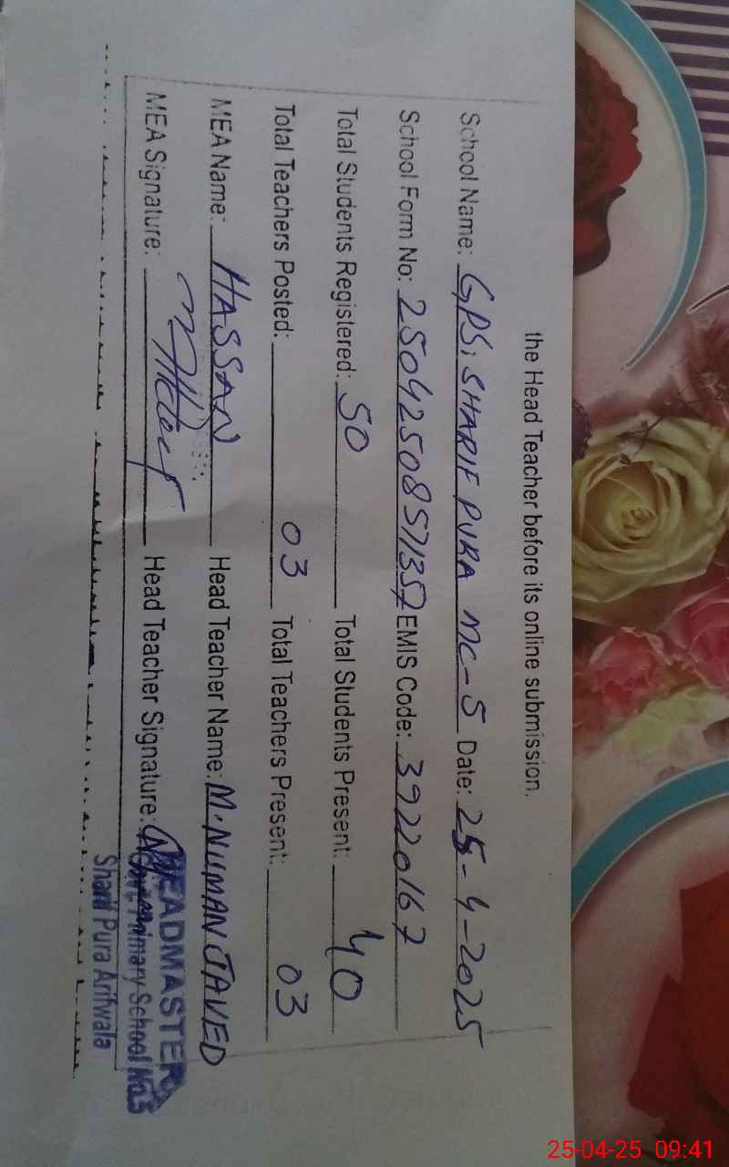 | EMIS Code: 39220167 | Name of School: GPS MOHALLA SHARIF PURA | |||