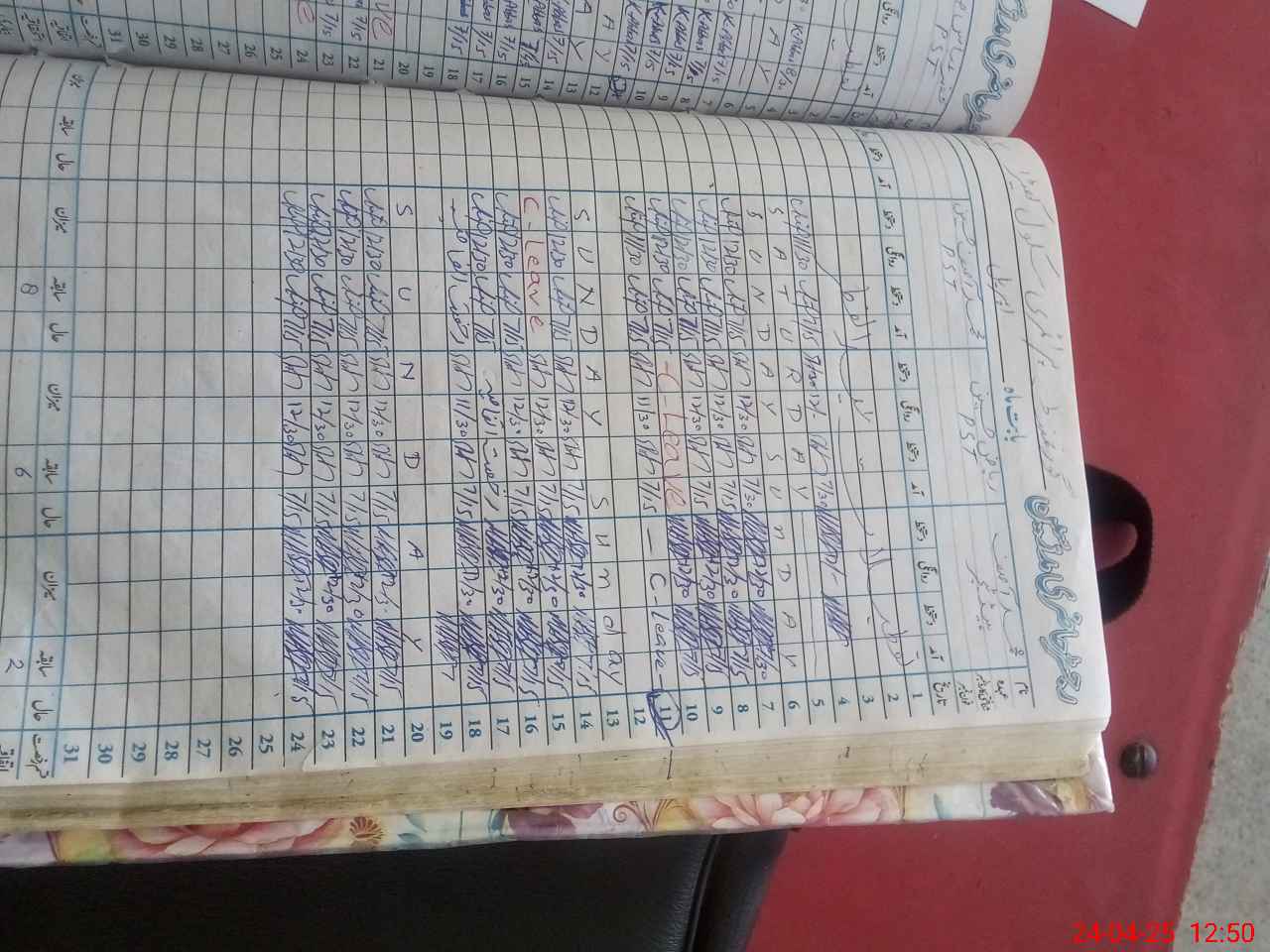 | Leave | Duty | Absent | Maternity | Medical | Ex- Pak |